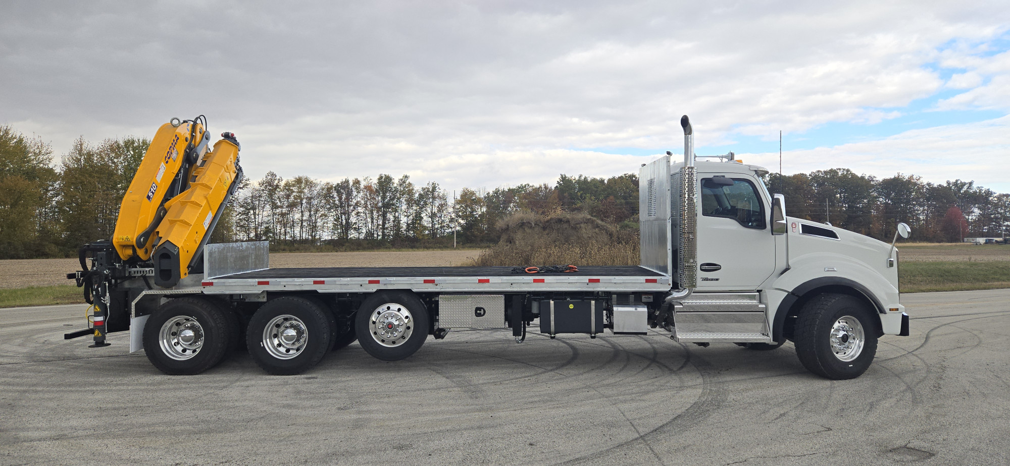 20k front (425), 46k rear, locking rear, Air ride rear, 500HP Cummins, Allison 4500 Automatic, Disk Brakes, Jake brake, tilt-tele steering wheel, a/c, air ride cab, White color, Double frame, front tow hooks.